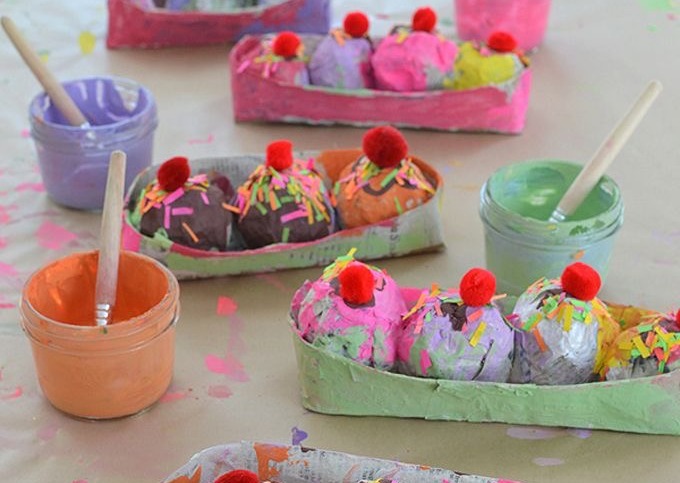 Sculpt paper mache ice cream cones and paint them in delicious flavors with sprinkles on top.