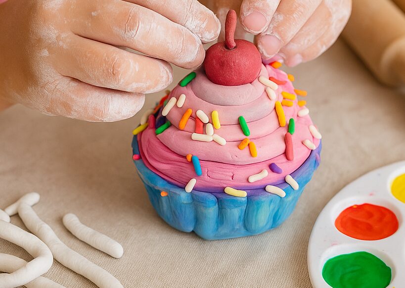 Kids pick their clay “flavor” — Cupcakes, Space Monsters, Donuts, or Popsicle Pals — then sculpt, decorate, and take home their masterpiece.